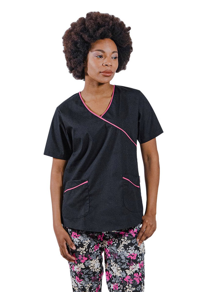 Chaqueta femenina entallada cruzada con faldón curvo.