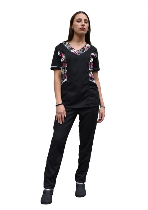 Ambo TELA superflex (64% poliéster/ 34,50% viscosa/ 1,50% elastano) combinado en escote y laterales con estampa.