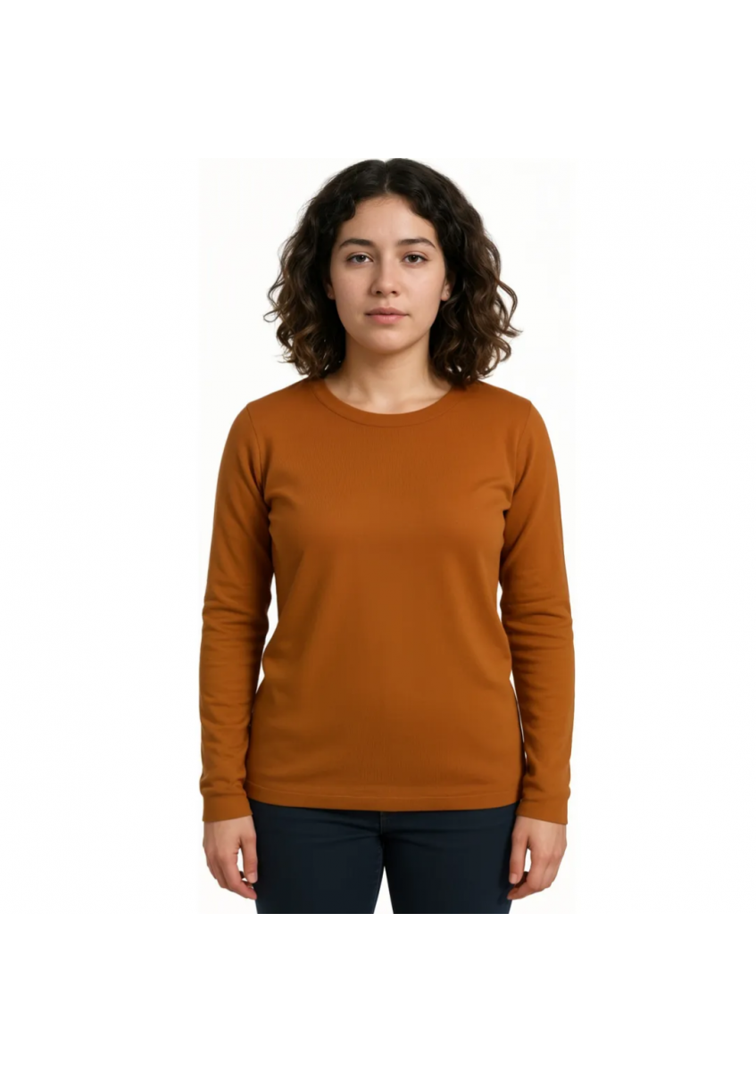Descripción: Sweater femenino con escote redondo con lycra punto yerseyColor: tostado