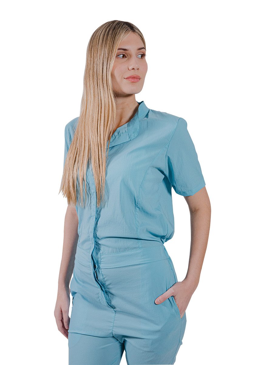 Enterizo tipo camisa con cuello mao y elástico en la cintura