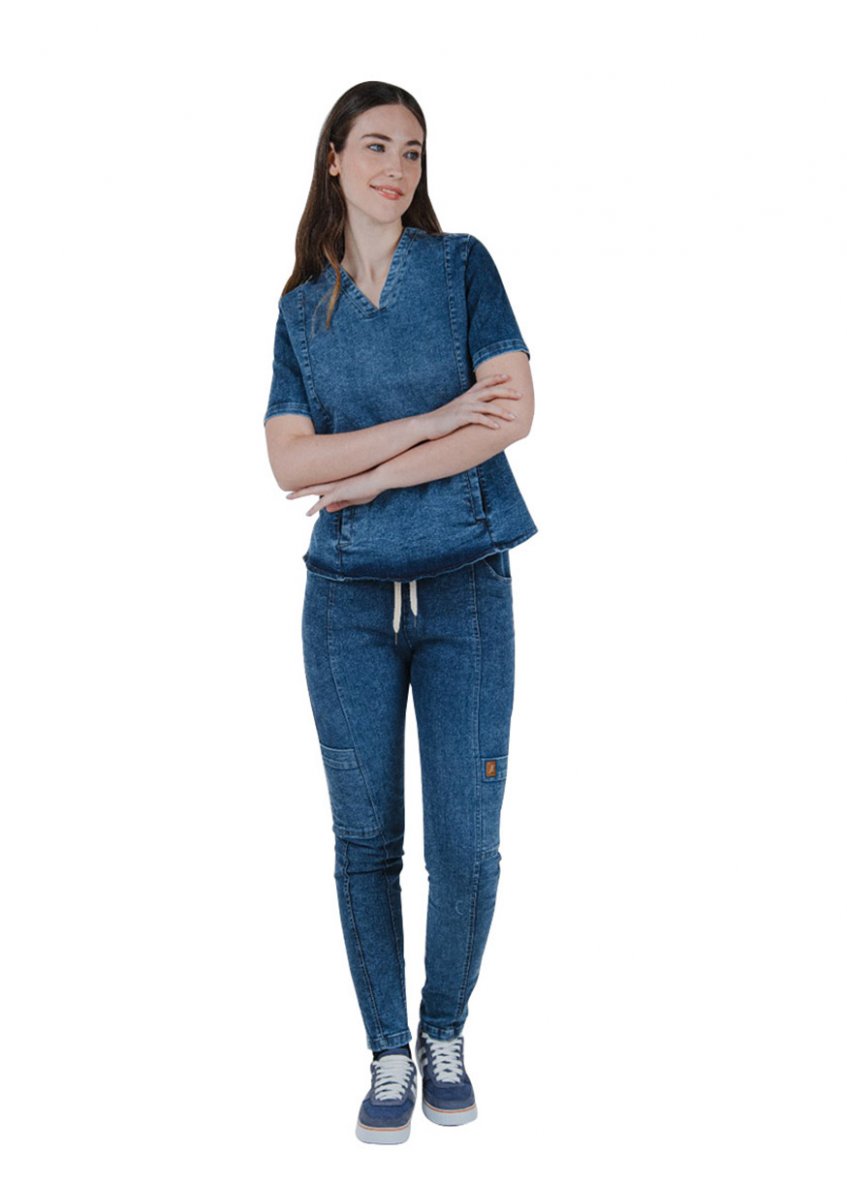 Pantalón con cintura con elástico y cordón, con bolsillos tipo cargo en laterales.