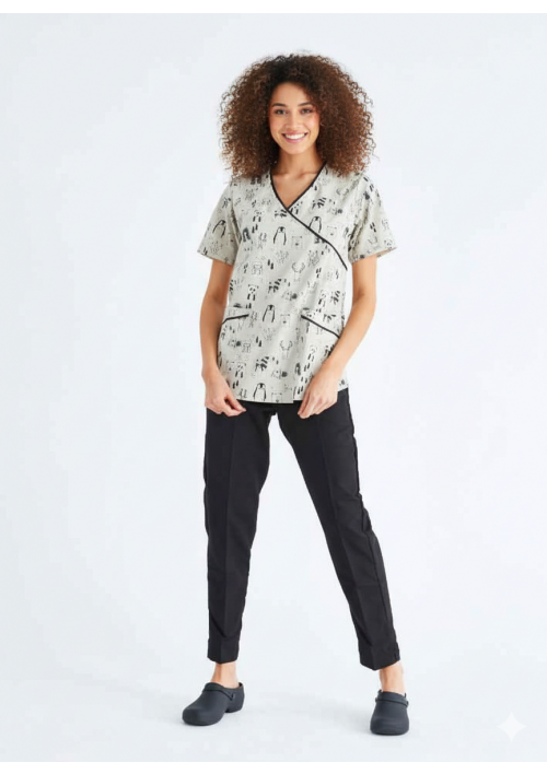 Pantalón femenino elastizado con botón. Tela grafil Streech.