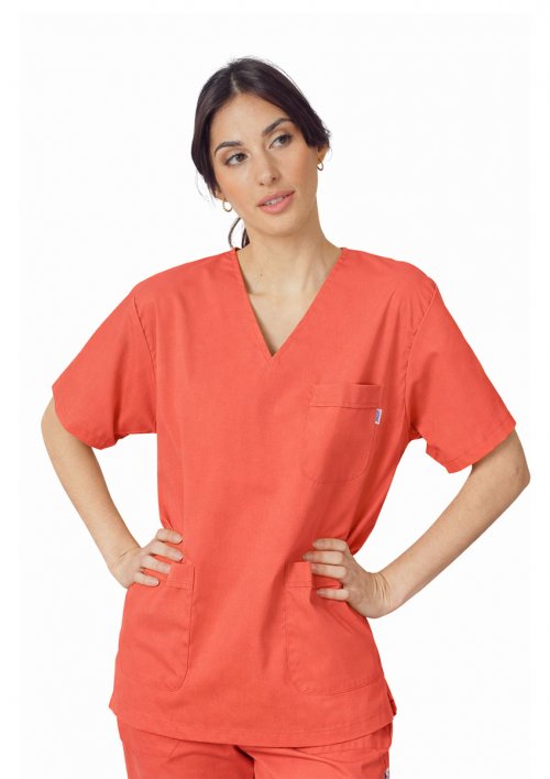 Chaqueta escote V clásica unisex de corte recto.